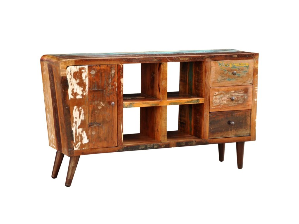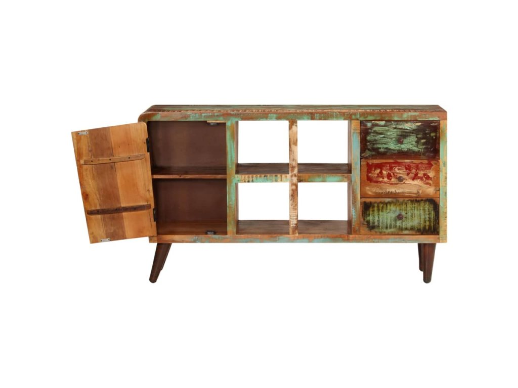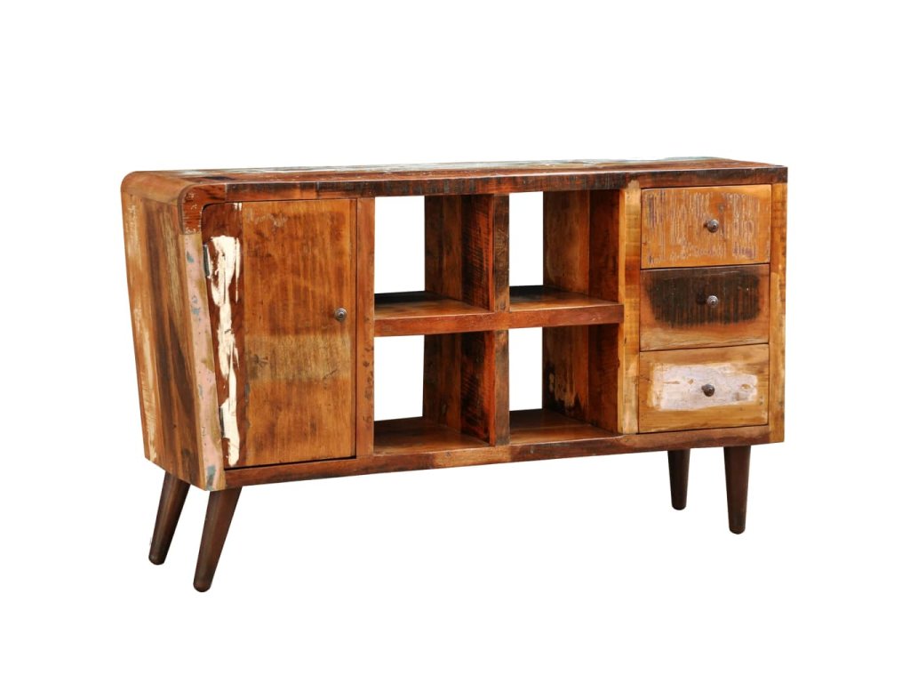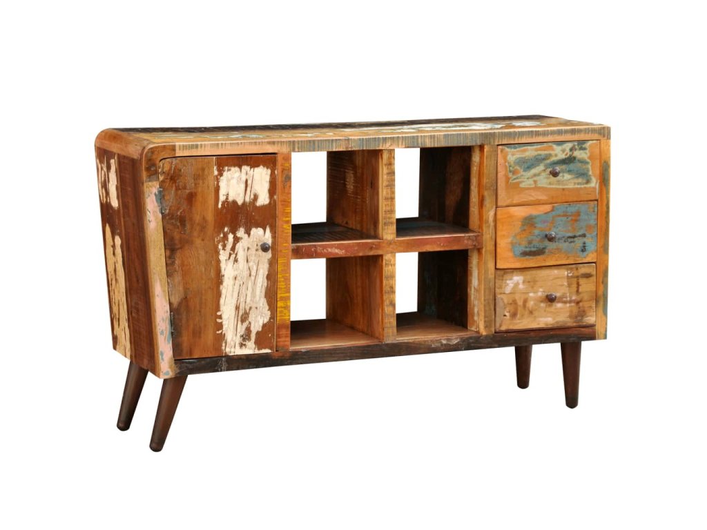 Skříňka s dvířky, 4 policemi a 3 zásuvkami recyklované dřevo