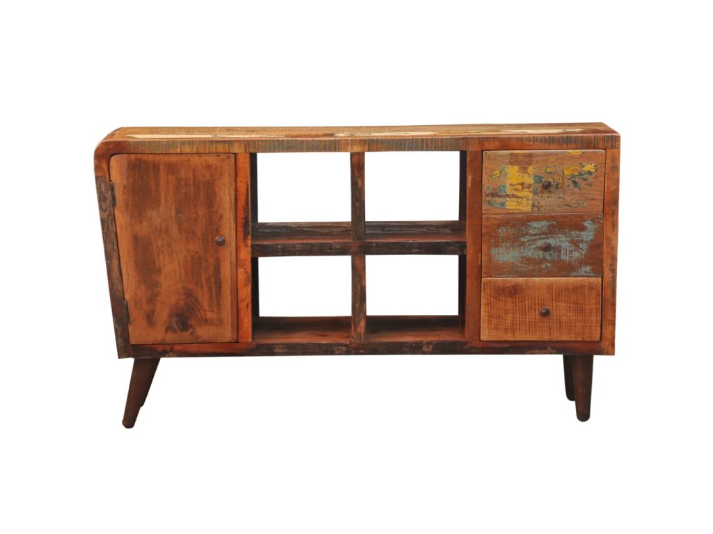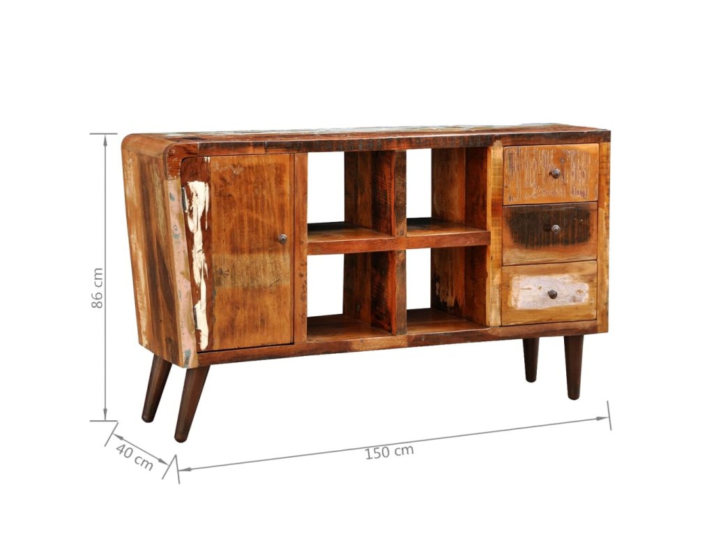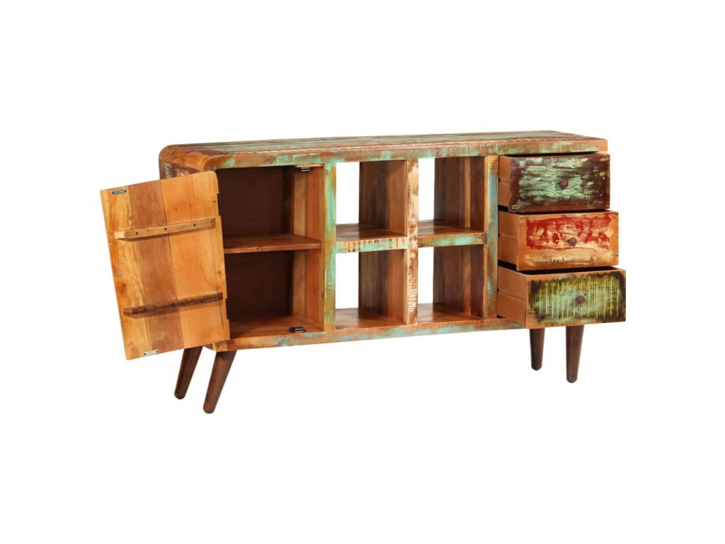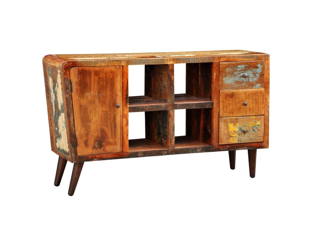 Skříňka s dvířky, 4 policemi a 3 zásuvkami recyklované dřevo