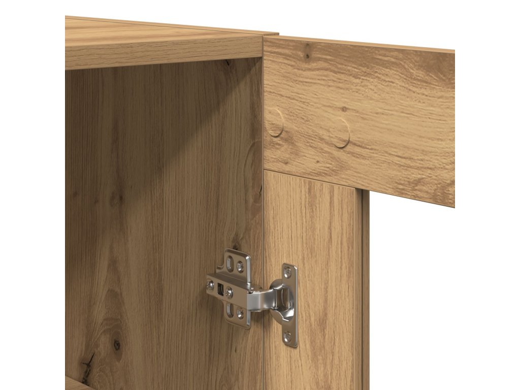 - Robustní materiály: Vyrobená z inženýrského dřeva a s elegantními skleněnými dveřmi, tenhle kousek spojuje odolnost a styl. Odolný design zajišťuje dlouhou životnost, zatímco skleněné dveře umožňují ukázat to, co máte pěkně srovnané.