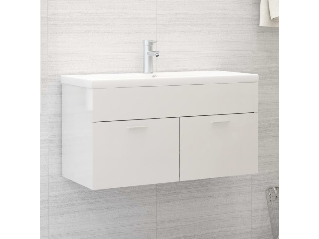 Skříňka se zápustným umyvadlem bílá lesklá kompozitní dřevo
