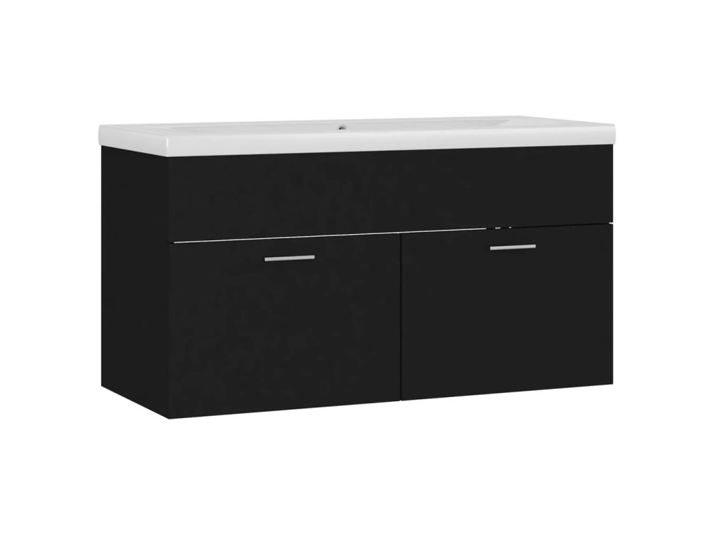 Skříňka se zápustným umyvadlem černá kompozitní dřevo