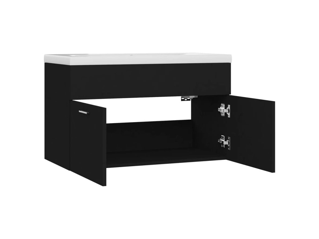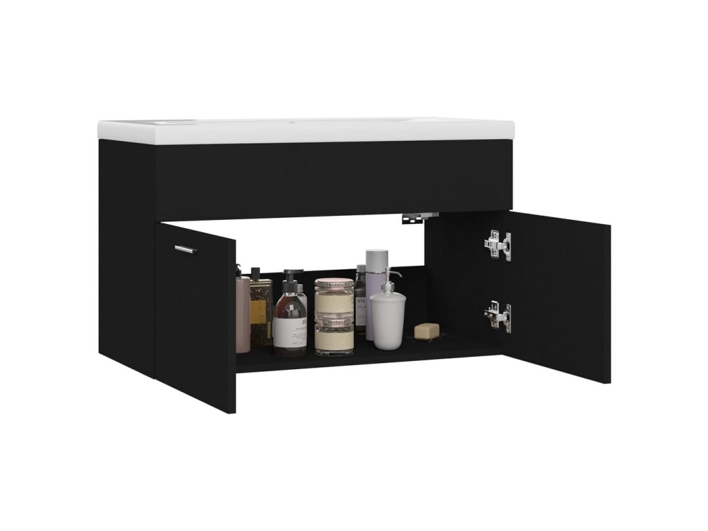 Skříňka se zápustným umyvadlem černá kompozitní dřevo