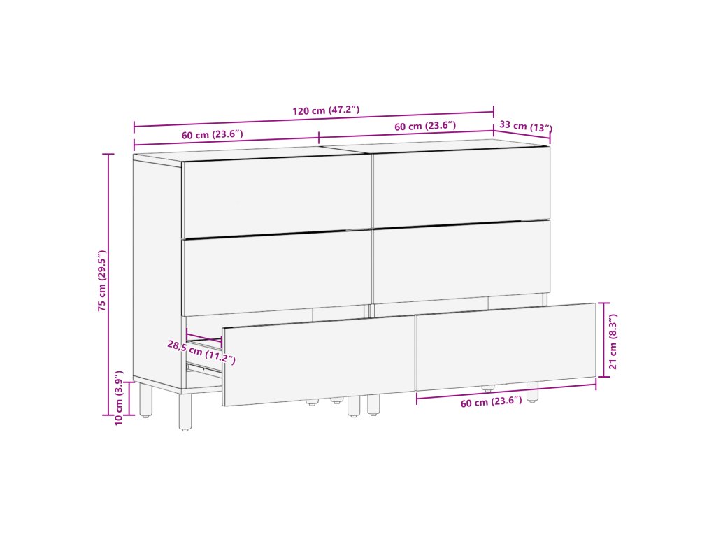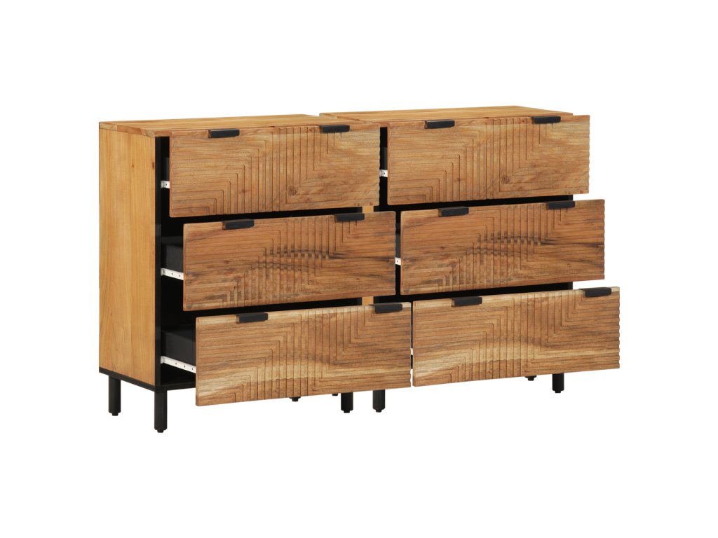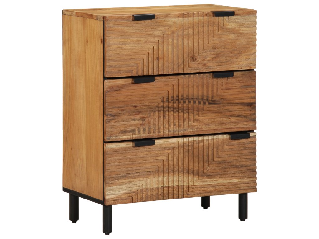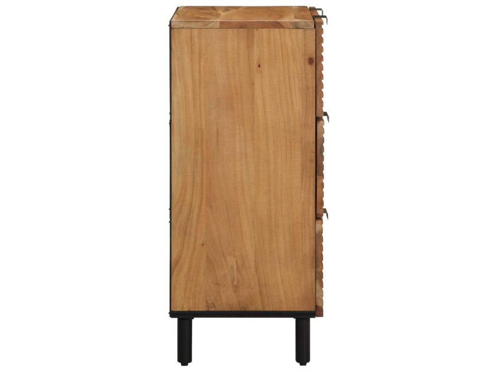 - Použité materiály: Tato skříň je vyrobená z masivního akáciového dřeva, což zaručuje odolnost a přírodní vzhled. Tento typ dřeva zvládne každodenní používání a s časem se jen zlepšuje, vytváří krásnou patinu. Její teplá, jedinečná textura dává charakter a dodává příjemný hmatový zážitek.