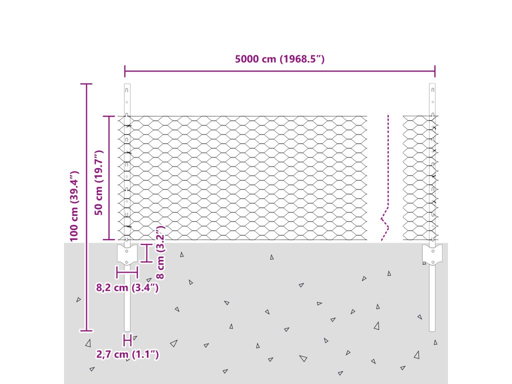 Plot s sloupkem Stříbrná 0,5 x 50 m Ocel