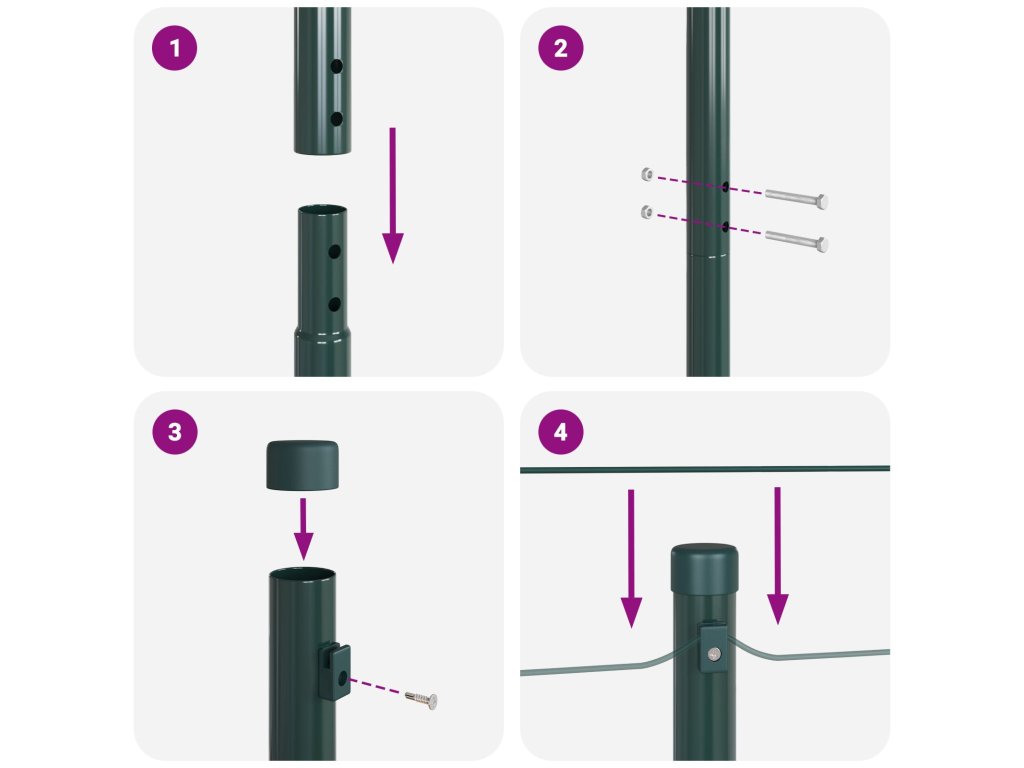 - Přiložené komponenty: Montáž sloupku je jednoduchá, protože potřebujete minimální počet dílů. Stačí přesně vyrobené komponenty a kladivo, abyste sloupek zasadili do země. Skvěle se spojí s bránami a ploty, a poskytuje stabilitu a funkčnost.