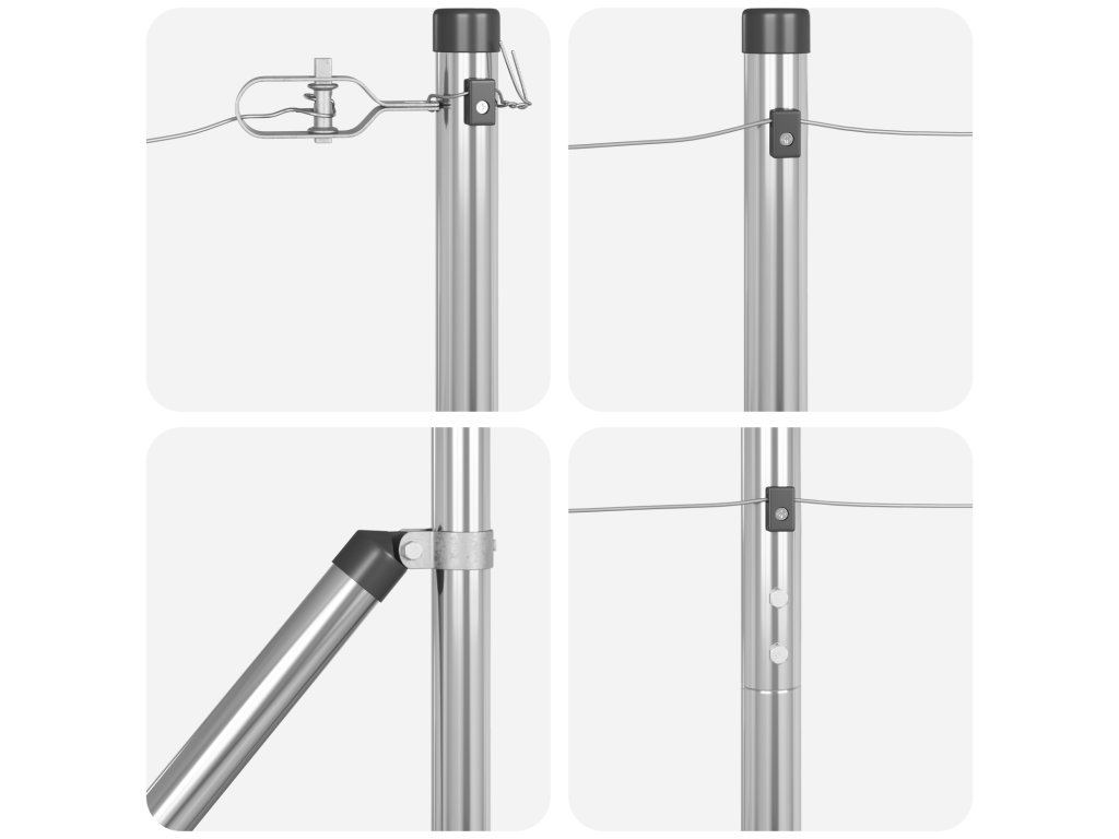 - Přiložené komponenty: Montáž sloupku je jednoduchá, protože potřebujete minimální počet dílů. Stačí přesně vyrobené komponenty a kladivo, abyste sloupek zasadili do země. Skvěle se spojí s bránami a ploty, a poskytuje stabilitu a funkčnost.