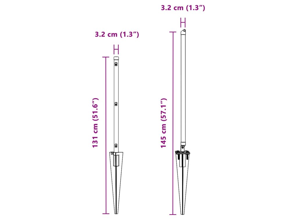 - Celkové rozměry: 3,2 x 3,2 x 145 cm (D x Š x V)
