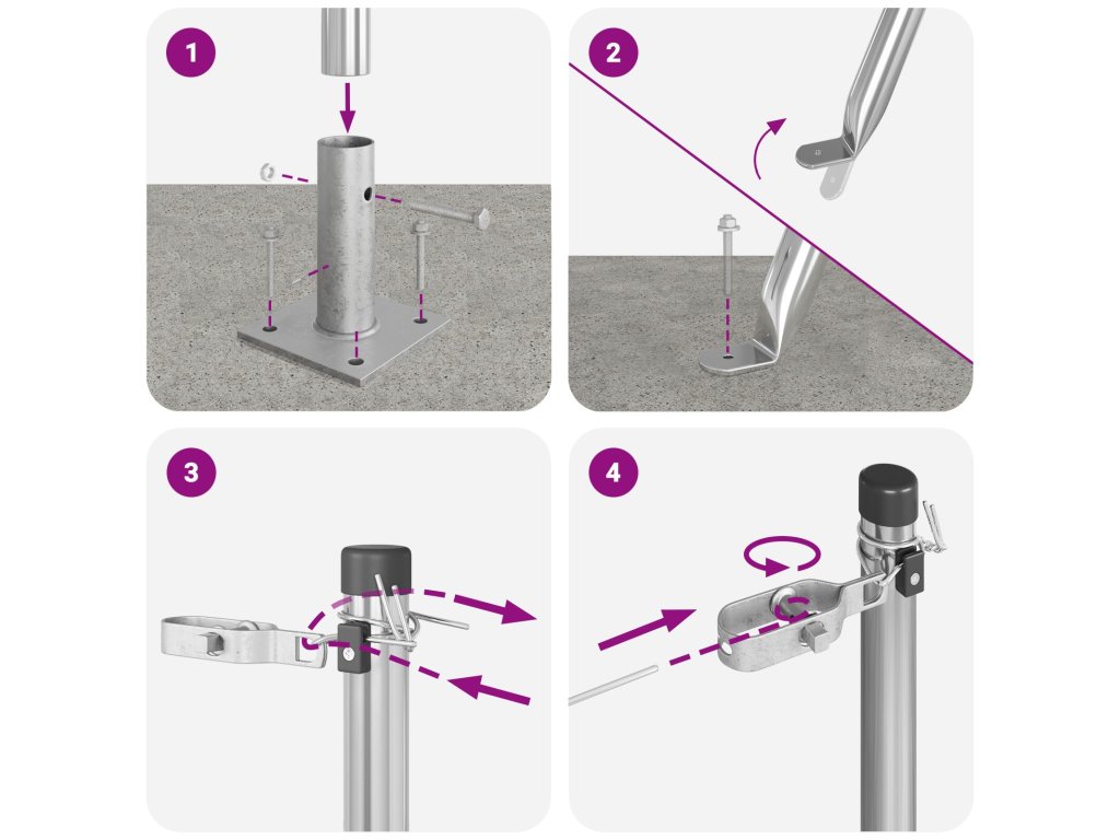 - Přiložené komponenty: Montáž sloupku je jednoduchá, protože potřebujete minimální počet dílů. Stačí přesně vyrobené komponenty a kladivo, abyste sloupek zasadili do země. Skvěle se spojí s bránami a ploty, a poskytuje stabilitu a funkčnost.