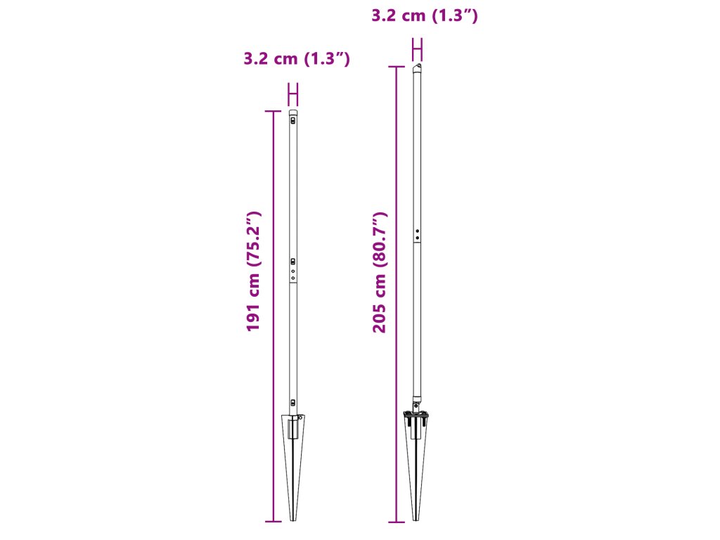 - Celkové rozměry: 3,2 x 3,2 x 205 cm (D x Š x V)