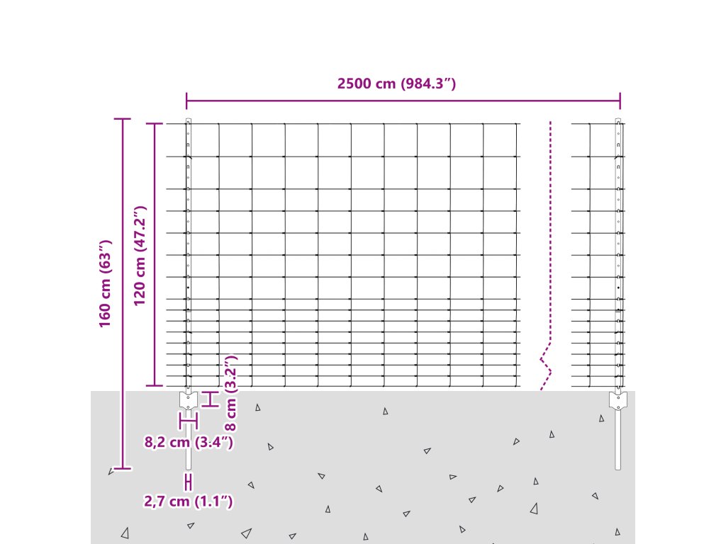 - Celkové rozměry: 2500 x 2,7 x 120 cm (D x Š x V)