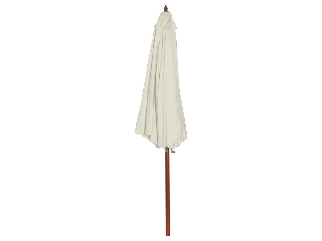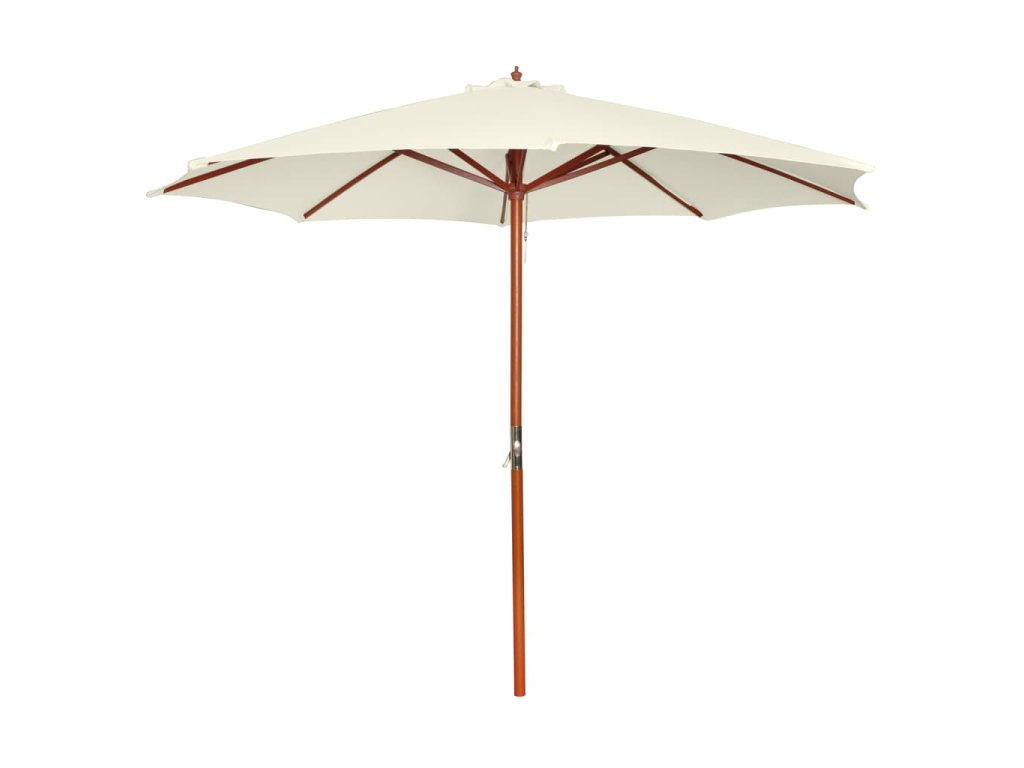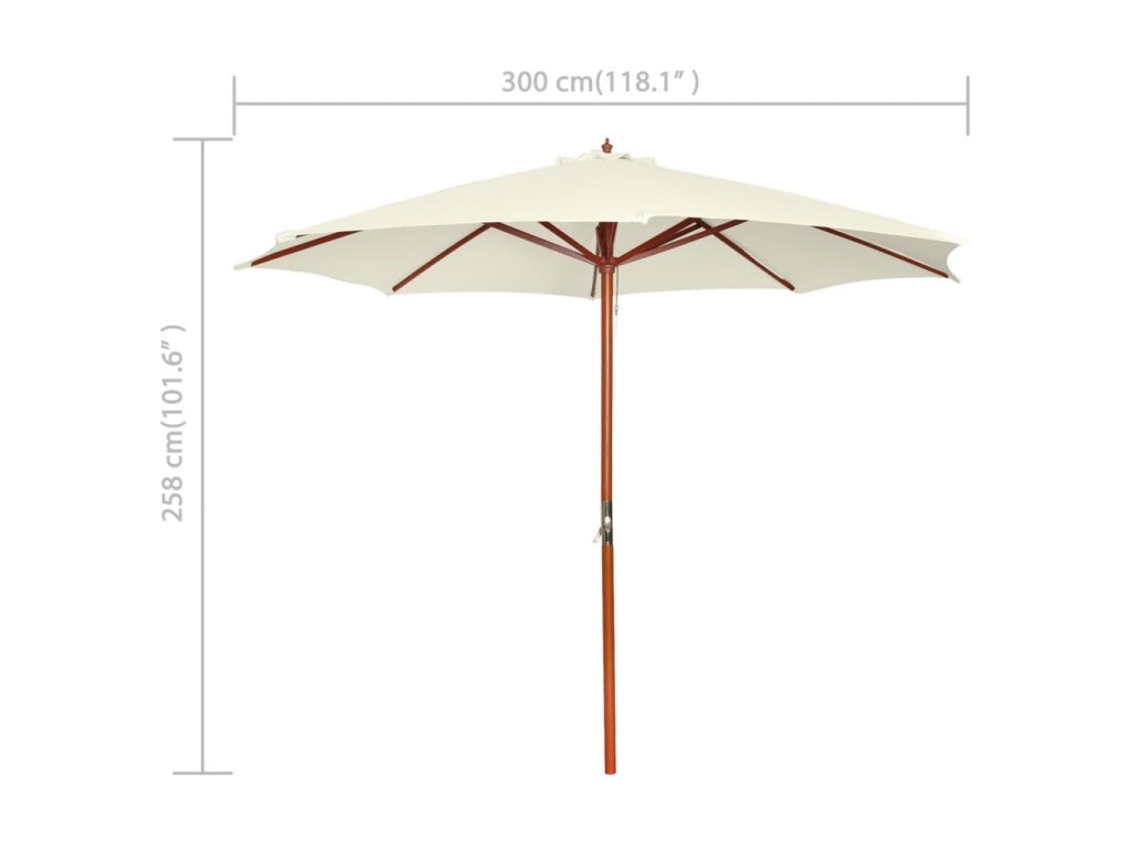 - Odolný materiál: Rám je vyroben z tvrdého dřeva a je vybavený dřevěným kolíkem, které bezpečně zajišťuje sluneční clonu. Potah je vyroben z polyesteru odolného proti hnilobě.