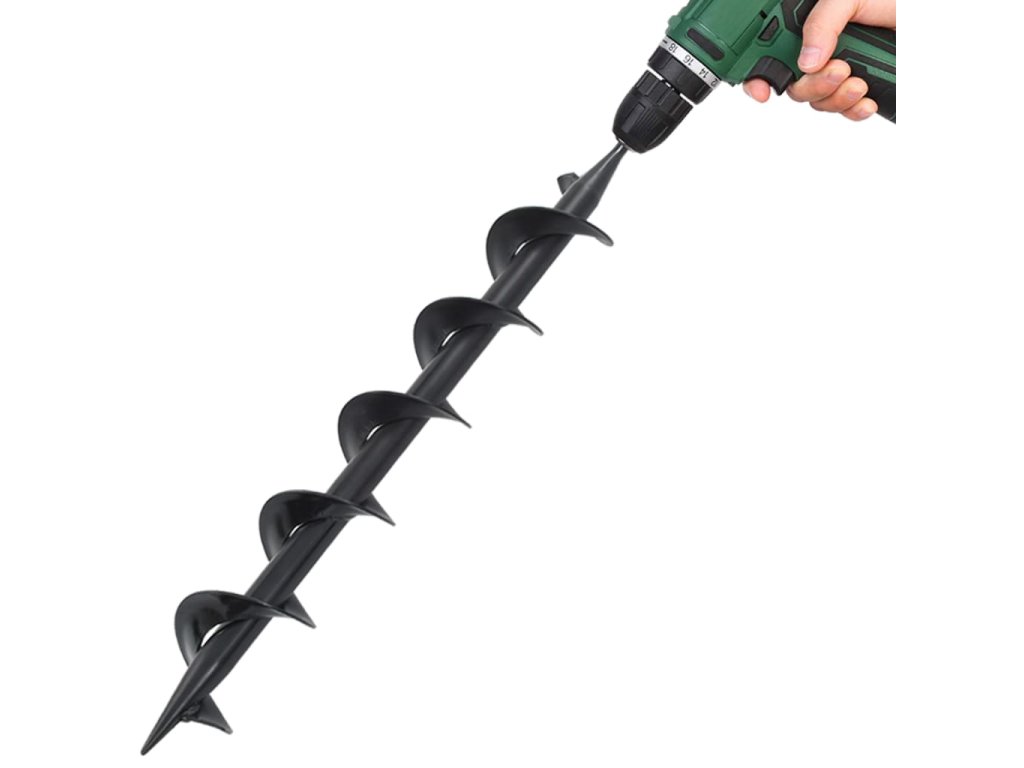 Nasaďte vrták na vrtačku a můžete okamžitě začít vrtat do většiny půdních povrchů, včetně těžké jílovité půdy, štěrkové půdy, písku a břidlicového podloží. Upozorňujeme, že vrtačka není součástí balení.