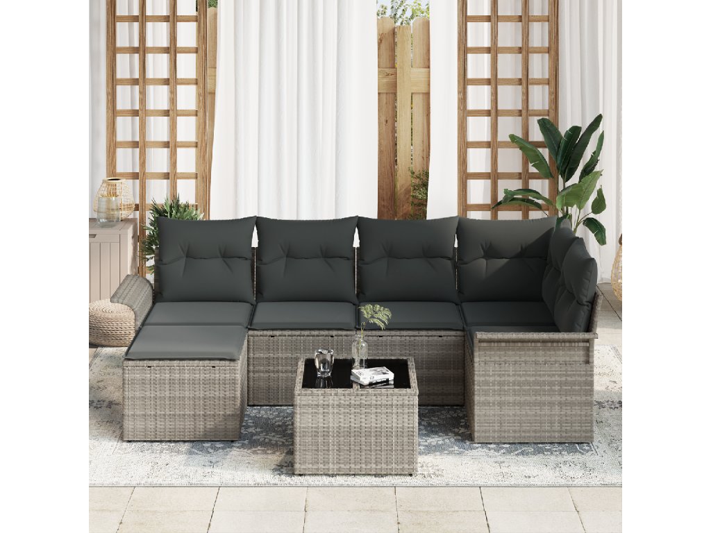 Sada zahradních pohovek 7 pcs Světle šedá Poly ratan