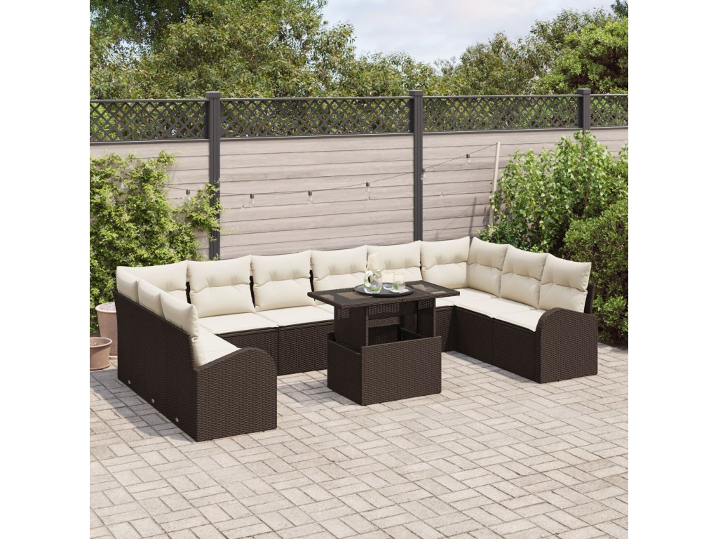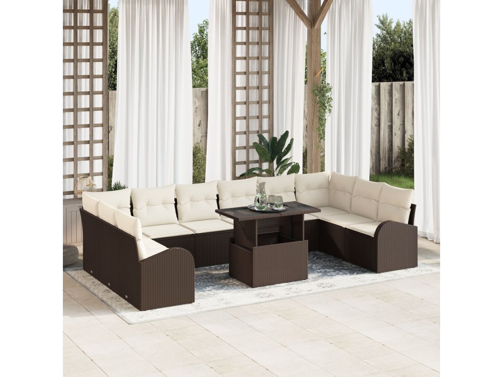 Sada zahradních pohovek 11 pcs Hnědá a krémová polyratan