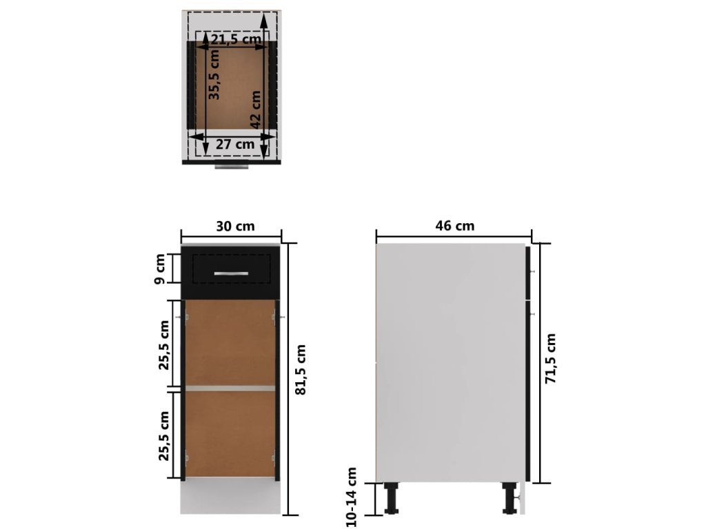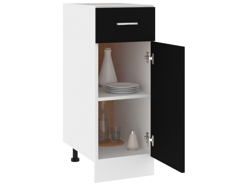 Úložná skříňka je praktická a odolná a pomůže vám udržet si v kuchyni pořádek. Dvě police a jedna zásuvka nabízí dostatek místa k ukládání misek, talířů, hrnců a dalších kuchyňských potřeb. Poličky chrání zvenku jedny dvířka, aby se schované předměty neušpinily. Skříňku lze snadno očistit navlhčeným hadříkem.