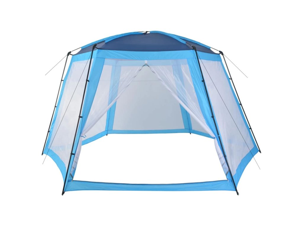 Party stan je vyroben z polyesterové tkaniny potažené vrstvou PA, což znamená, že výborně odolává UV záření. Zásluhou silného ocelového rámu je tento stan pevný a dlouho vydrží. Síťované boční stěny umožňují optimální větrání. Hodí se nad kruhové bazény o maximálním průměru 300 cm.