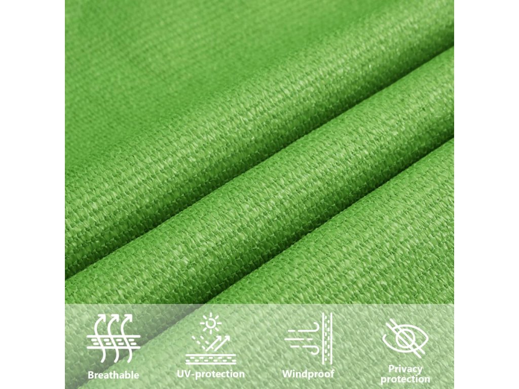 Stínicí plachta ze 100% HDPE (polyetylenu s vysokou hustotou) vás ochrání před přímým slunečním zářením a přitom dává průchod dostatku větru. Je také vodopropustná. HDPE je speciálně upravený materiál, který je odolný vůči plísním a UV záření. Plachtu proti slunci lze snadno nachystat a upevnit pomocí dodaných lanek a nerezových spojovacích prvků v každém rohu.