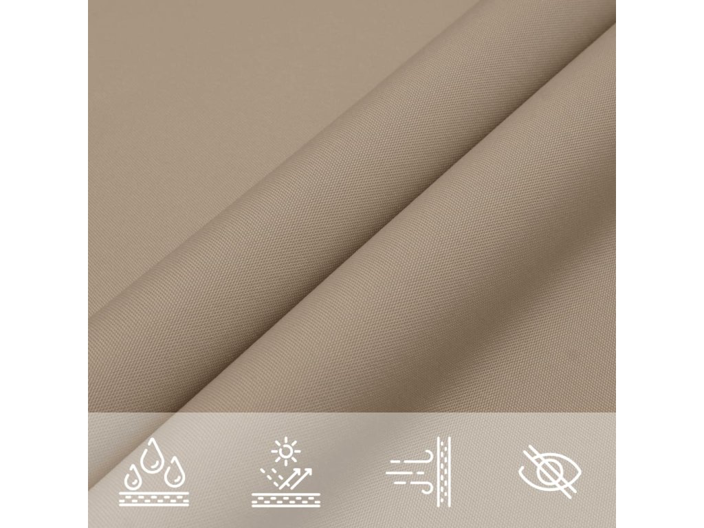 Tato plachta proti slunci je vyrobená z oxfordské látky potažené vrstvou PU, takže vás ochrání před přímým slunečním světlem a deštěm. Látka je speciálně ošetřena, je tedy odolná vůči plísni a UV záření.
