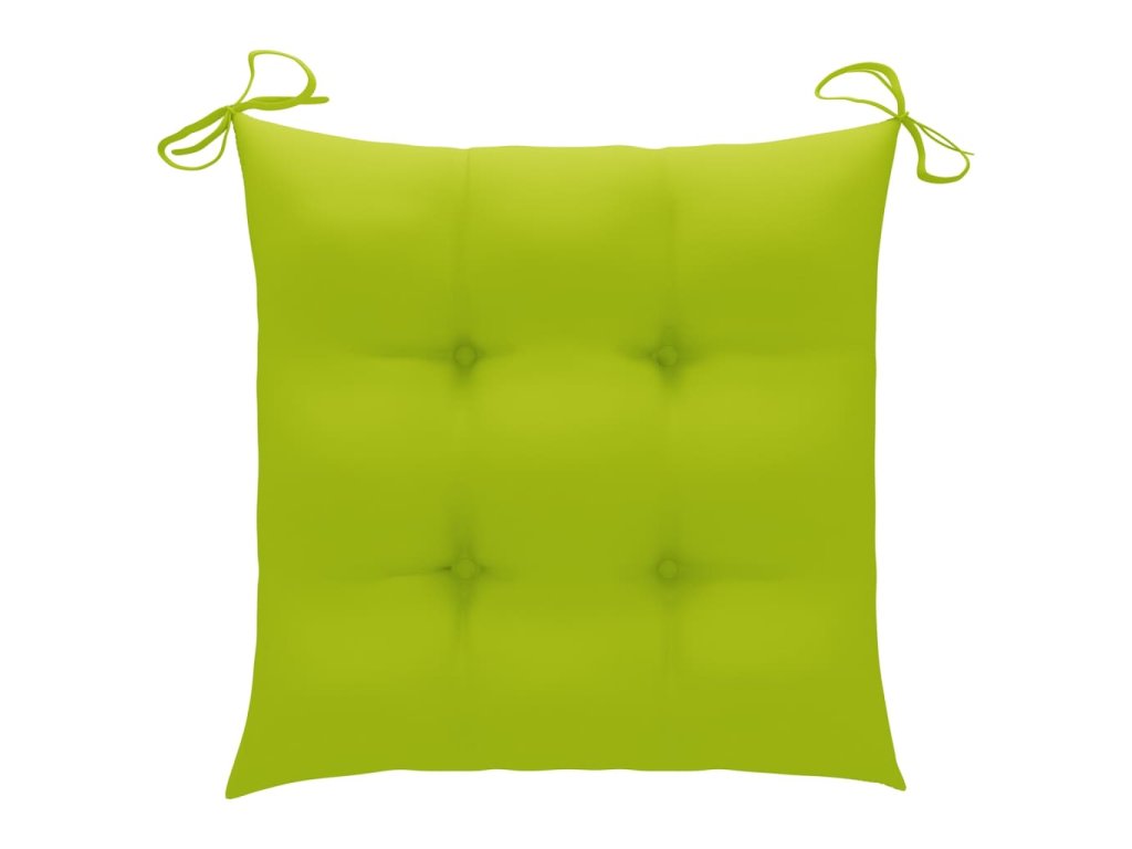 Nábytek je zhotovený z extrémně odolného teakového dřeva, které již prošlo procesem smršťování, bylo uměle vysušené a poté jemně a dohladka obroušené. Toto tvrdé dřevo je oceňované pro svou výjimečnou pevnost a klimatickou odolnost, a proto představuje zdaleka nejvhodnější materiál pro výrobu zahradního nábytku. Jedná se o skvělou volbu, pokud si chcete pořídit zahradní vybavení, které vám vydrží sloužit dlouhá léta. K údržbě a čištění vám postačí navlhčený hadřík. Jídelní židle lze navíc stohovat, když je zrovna nepoužíváte, aby vám zbytečně nezabíraly místo. O komfort se vám postarají přiložené podušky. Každá z nich je opatřená 2 páry šňůrek, za které ji k židli můžete pevně přivázat.