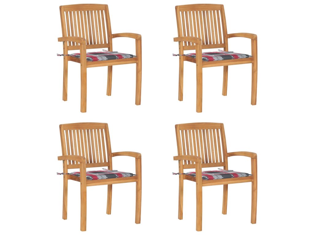 Stohovací zahradní židle s poduškami 4 ks masivní teak
