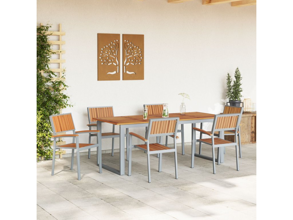 - Kvalitní materiály: Židle je z masivního akáciového dřeva, které je známé svou odolností a krásnou texturou. Vybráním tohoto materiálu získáte robustní střed, což z ní dělá spolehlivou volbu pro venkovní nábytek. Akácie dodává krásný vzhled, takže se na ní dobře dívá a je odolná vůči počasí.