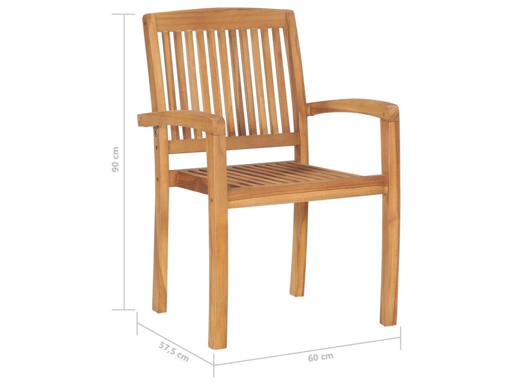 Nábytek je zhotovený z extrémně odolného teakového dřeva, které již prošlo procesem smršťování, bylo uměle vysušené a poté jemně a dohladka obroušené. Toto tvrdé dřevo je oceňované pro svou výjimečnou pevnost a klimatickou odolnost, a proto představuje zdaleka nejvhodnější materiál pro výrobu zahradního nábytku. Jedná se o skvělou volbu, pokud si chcete pořídit zahradní vybavení, které vám vydrží sloužit dlouhá léta. K údržbě a čištění vám postačí navlhčený hadřík. Jídelní židle lze navíc stohovat, když je zrovna nepoužíváte, aby vám zbytečně nezabíraly místo. O komfort se vám postarají přiložené podušky. Každá z nich je opatřená 2 páry šňůrek, za které ji k židli můžete pevně přivázat.