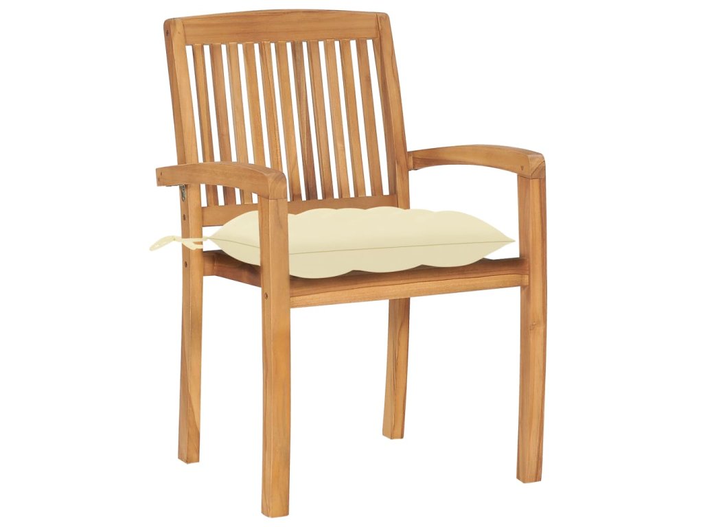 Nábytek je zhotovený z extrémně odolného teakového dřeva, které již prošlo procesem smršťování, bylo uměle vysušené a poté jemně a dohladka obroušené. Toto tvrdé dřevo je oceňované pro svou výjimečnou pevnost a klimatickou odolnost, a proto představuje zdaleka nejvhodnější materiál pro výrobu zahradního nábytku. Jedná se o skvělou volbu, pokud si chcete pořídit zahradní vybavení, které vám vydrží sloužit dlouhá léta. K údržbě a čištění vám postačí navlhčený hadřík. Jídelní židle lze navíc stohovat, když je zrovna nepoužíváte, aby vám zbytečně nezabíraly místo. O komfort se vám postarají přiložené podušky. Každá z nich je opatřená 2 páry šňůrek, za které ji k židli můžete pevně přivázat.