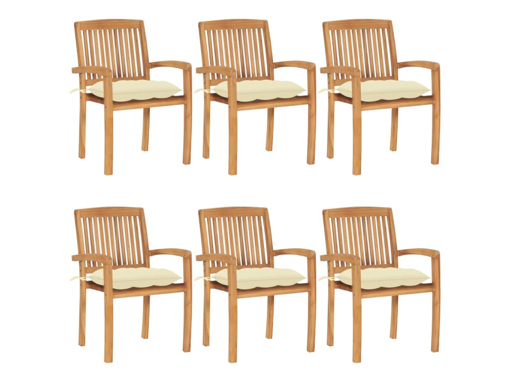 Stohovatelné zahradní židle s poduškami 6 ks masivní teak