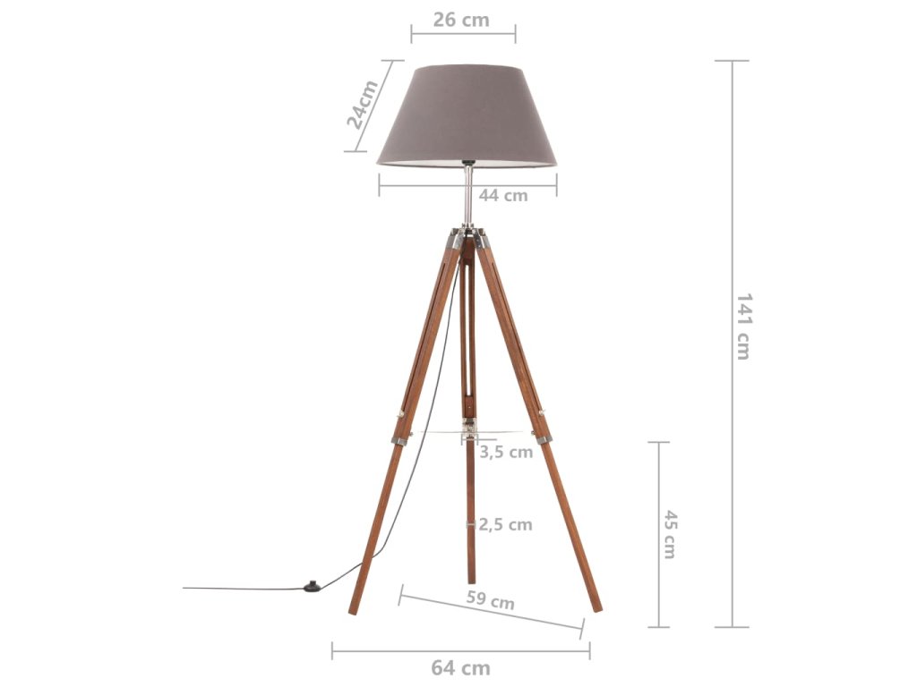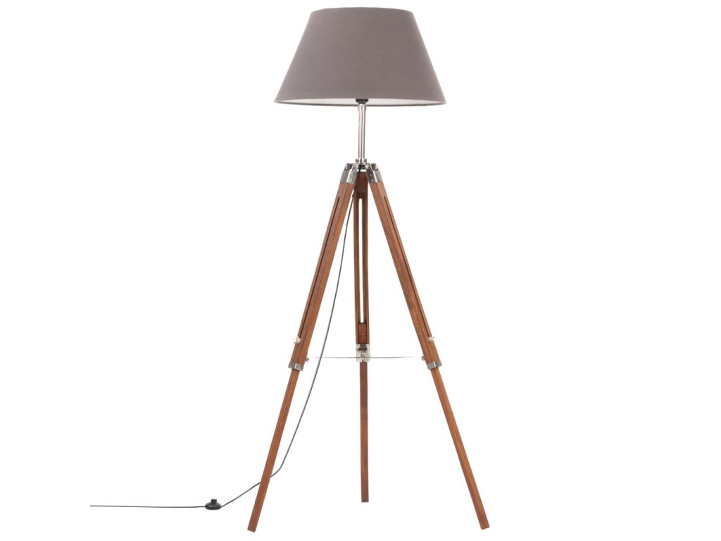 Stojací lampa stativ medově hnědá a šedá masivní teak 141 cm