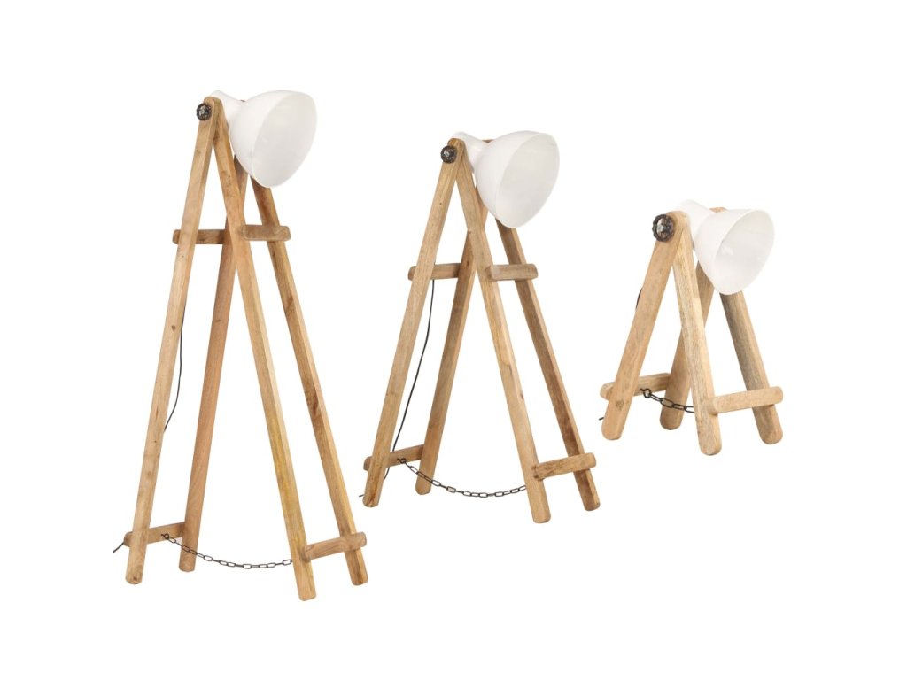 Stojací lampy 3 ks bílé E27 masivní mangovníkové dřevo