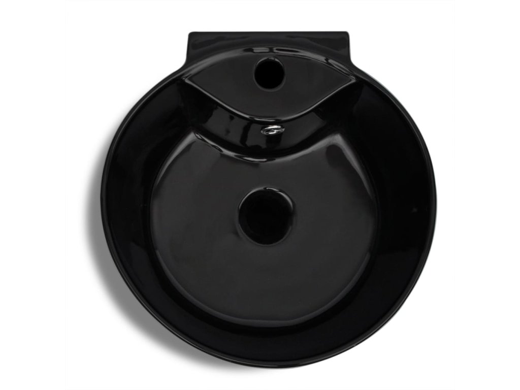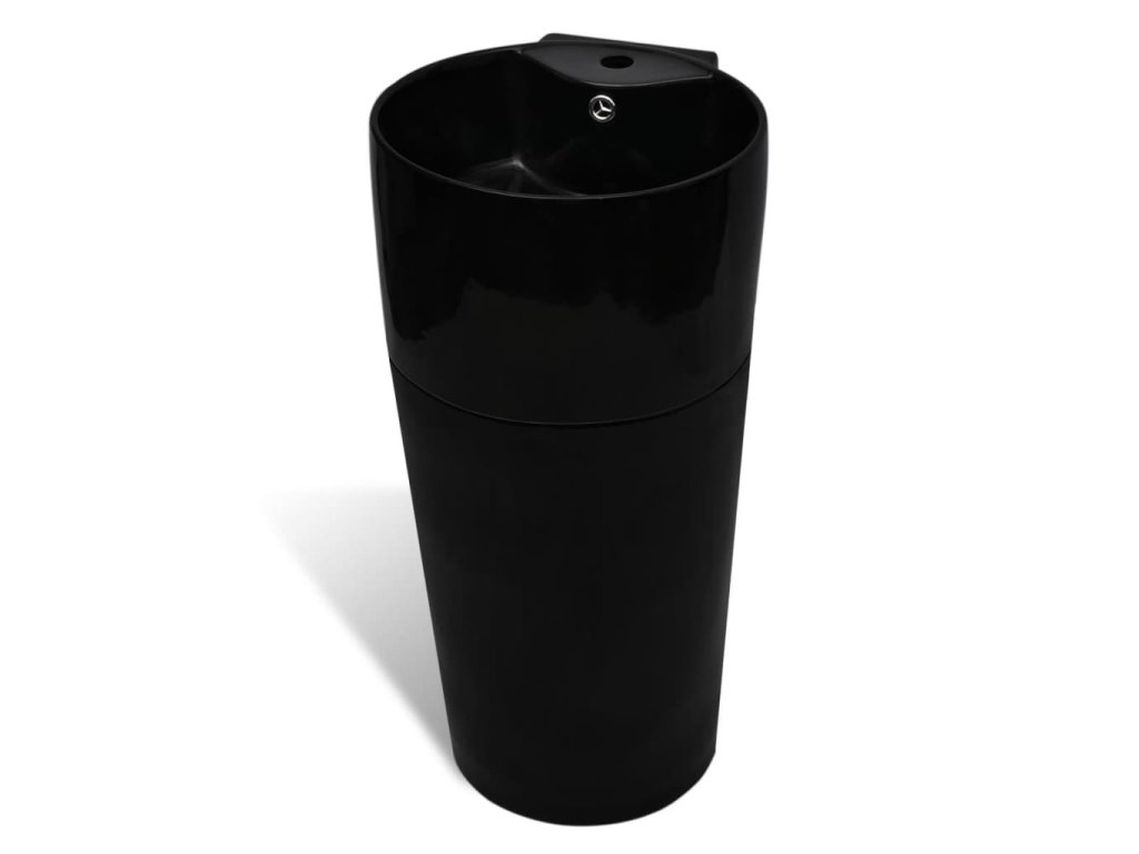 Stojací umyvadlo keramické kulaté černé, otvor na baterií, přepad