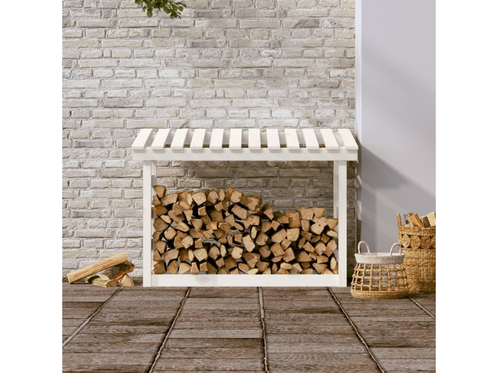 Stojan na dřevo bílý 108x64,5x78 cm masivní borovice