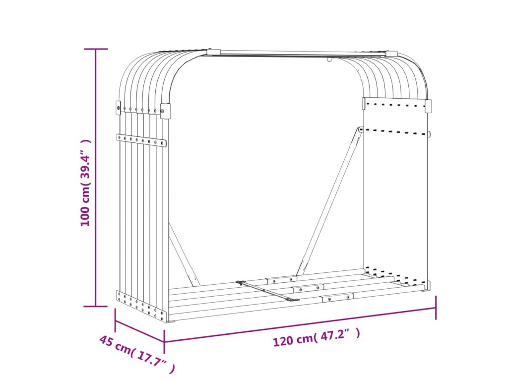 Stojan na dřevo imitaci dřeva 120 x 45 x 100 cm pozinkovaná ocel