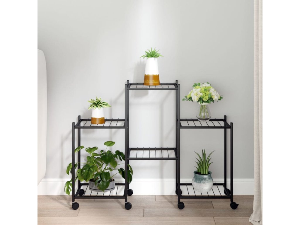 Stojan na květiny s kolečky 83 x 25 x 63,5 cm černý železo