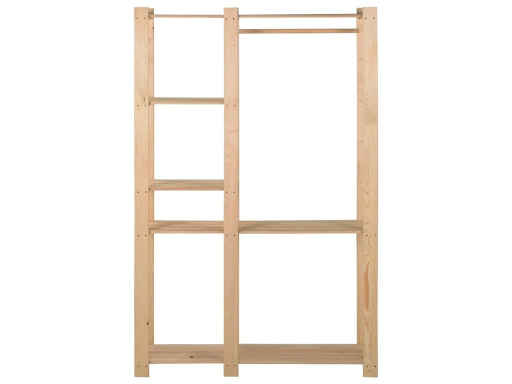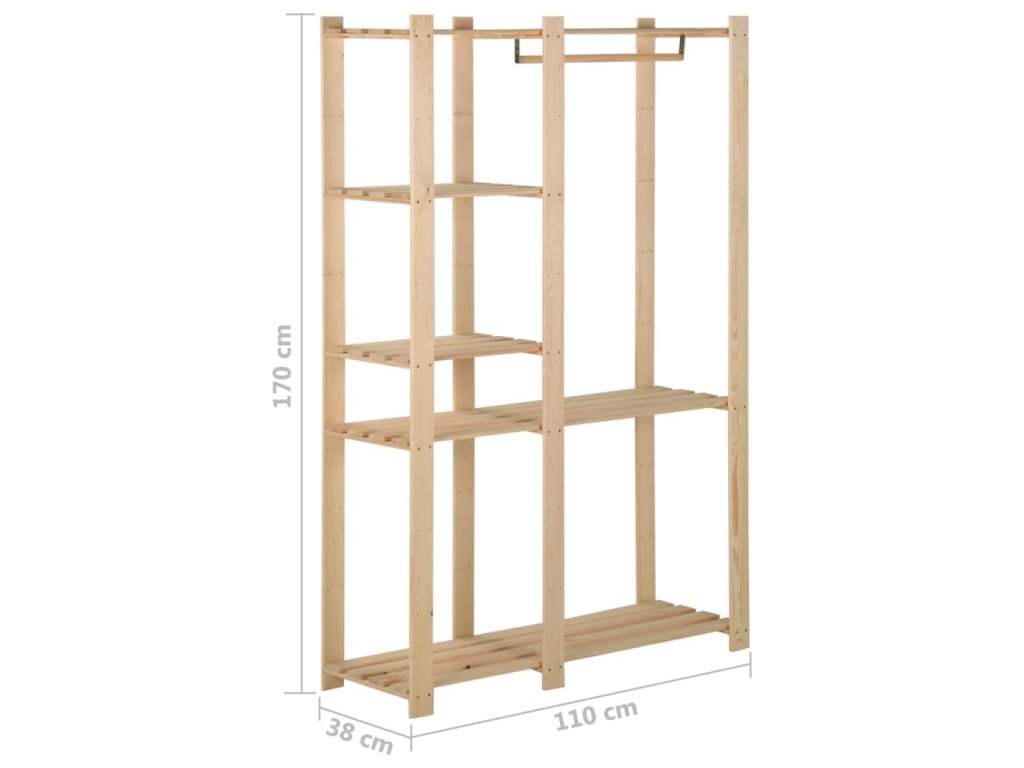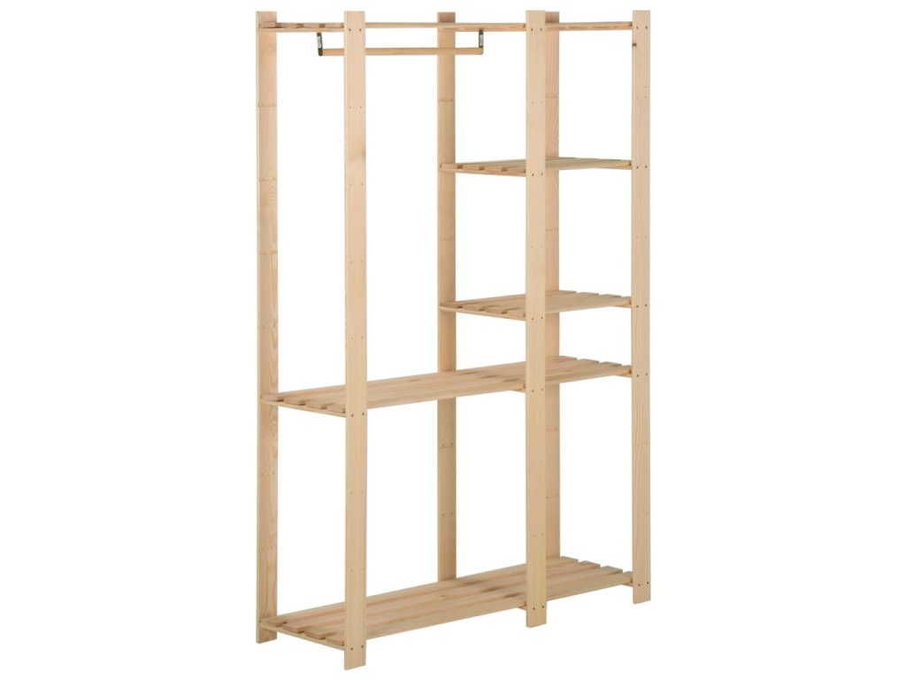 S tímto stojanem na šaty získáte další úložný prostor, s jehož pomocí udržíte v ložnici nebo v šatně pořádek. Stojan je zhotoven z masivního borového dřeva, je tedy stabilní a má dlouhou životnost. Má 5 polic, do kterých můžete uložit boty, trička, krabice atd. Šatní tyč vám umožní uspořádat si delší oblečení, kabáty, bundy atd. Jeho jednoduchý, ale stylový design dodá vaší ložnici nádech elegantního kouzla.