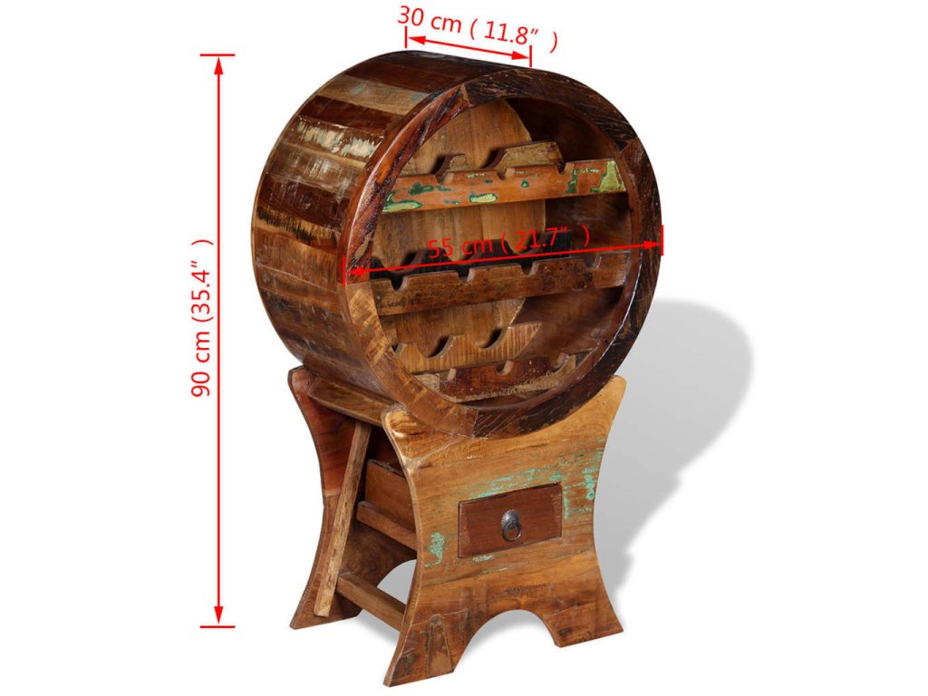 Tento stojan na víno z recyklovaného dřeva je pevný, odolný, krásný a disponuje typickými vlastnosti jednotlivých druhů dřeva jako je teak, palisandr, mangovník, akácie, recyklované dřevo, tvrdé dřevo, atd. Díky tomu je každý kus unikát. Známky používání a viditelná struktura dřeva botníku dodávají jedinečnost a podtrhují jeho krásný úchvatný vintage vzhled.