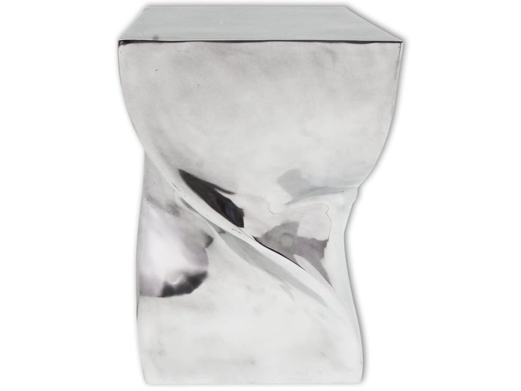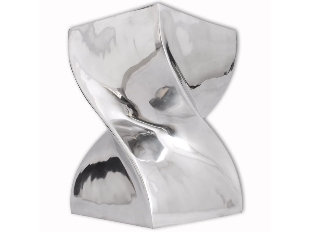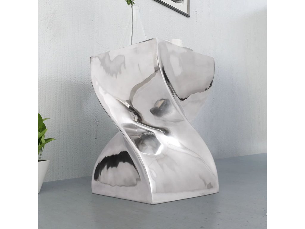 Stolička / odkládací stolek, kroucený tvar, hliníkový stříbrný