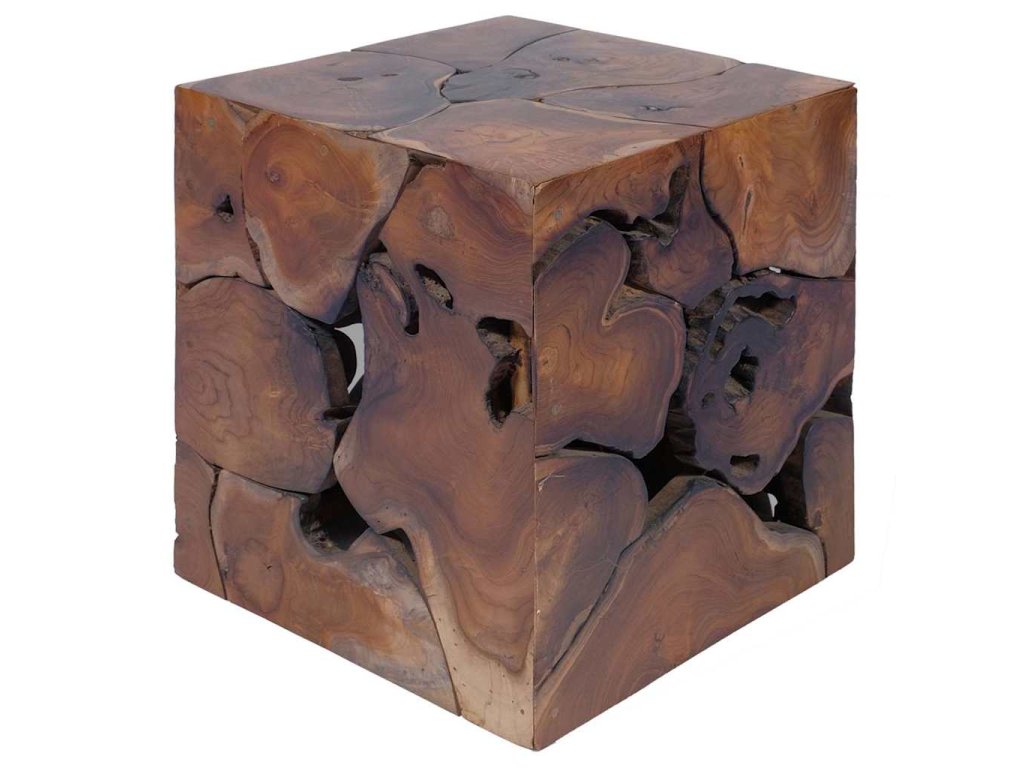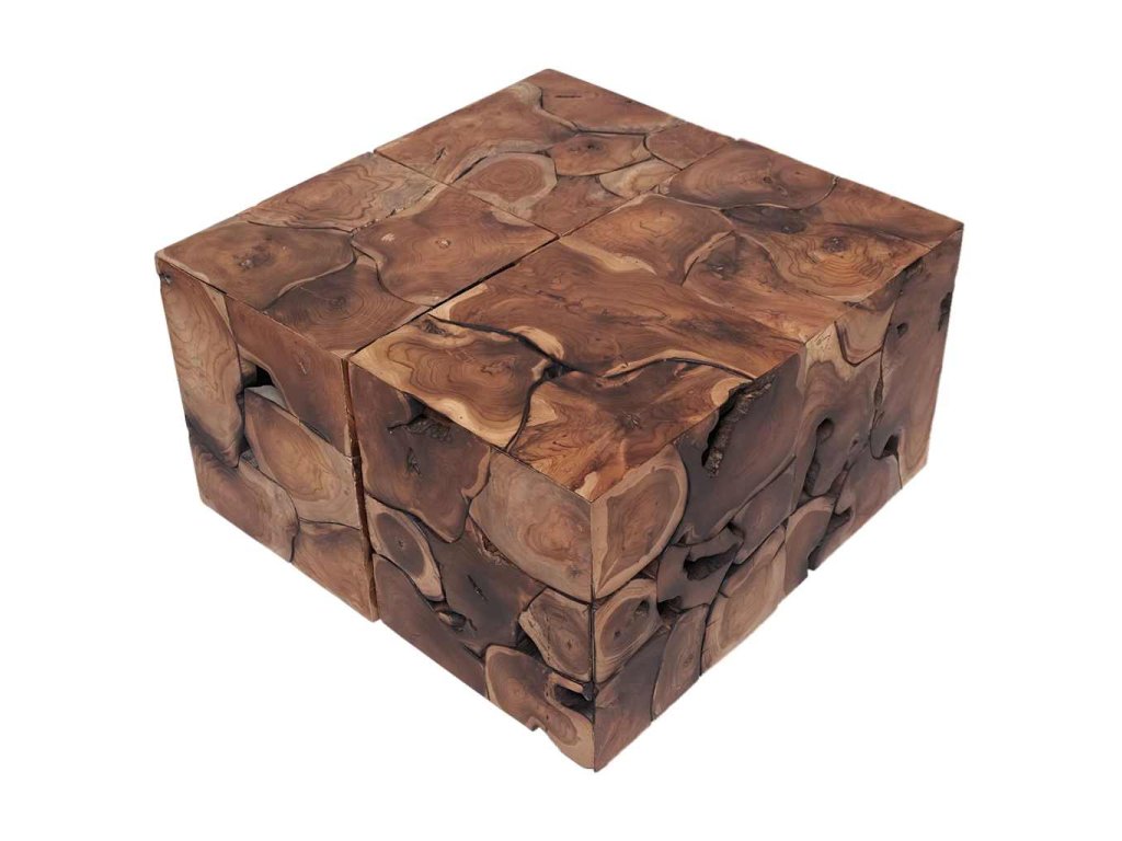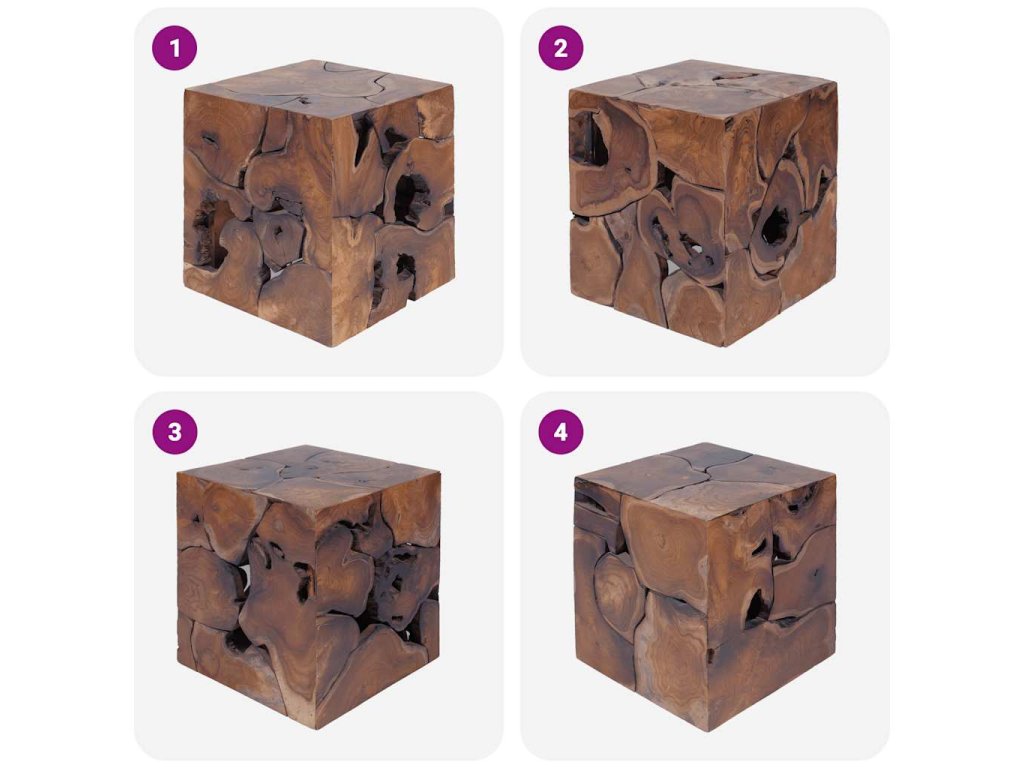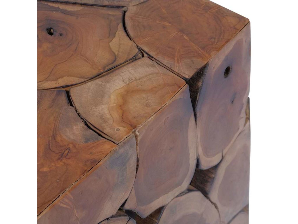 Tato sada 4 jedinečných stoliček je vyrobená z masivního teaku, vyzařuje rustikální kouzlo a je opravdovým unikátem. Stoličky mohou být také použity jako podnožky, odkládací stolky apod. Pro sestavení konferenčního stolku můžete kombinovat 2, 4 nebo 6 stoliček.
