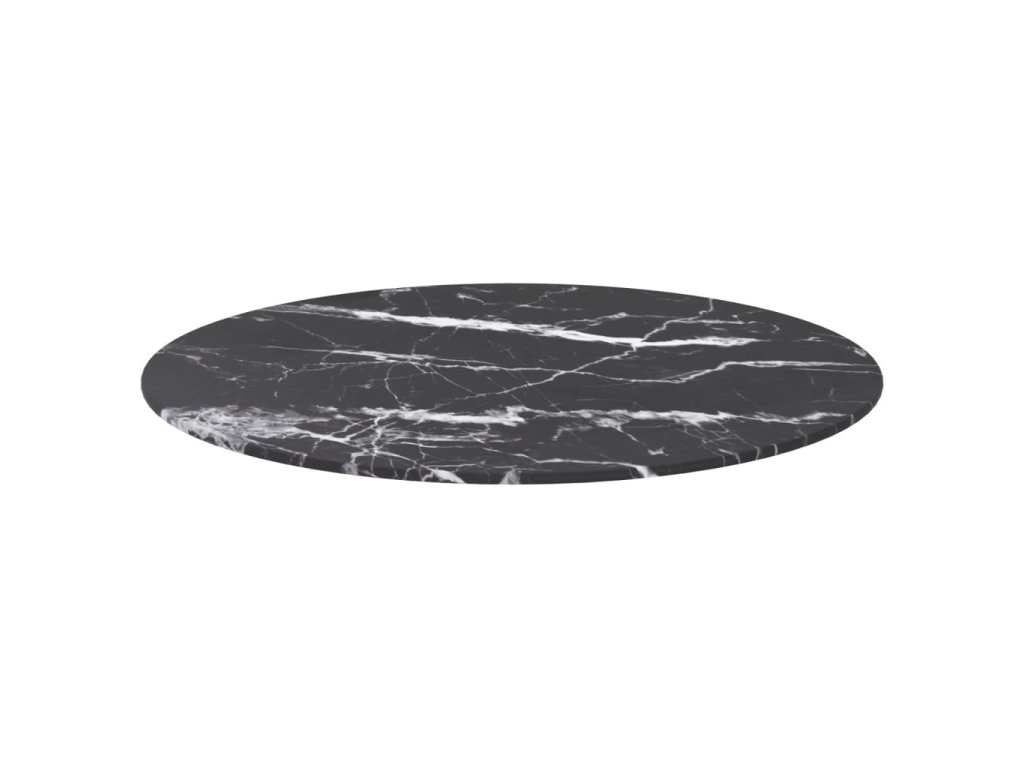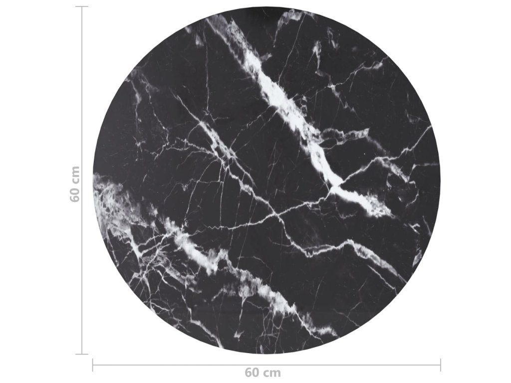 Stolní deska černá Ø 60 x 0,8 cm tvrzené sklo mramorový design