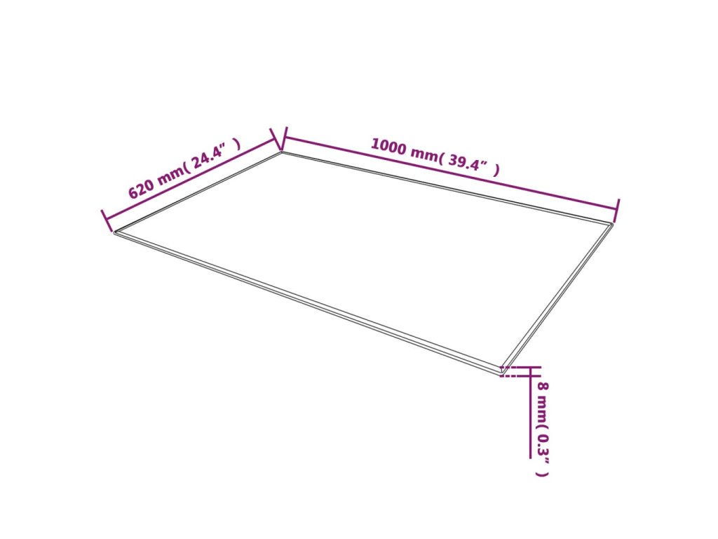 Stolní deska z tvrzeného skla, obdélníková, 1000x620 mm