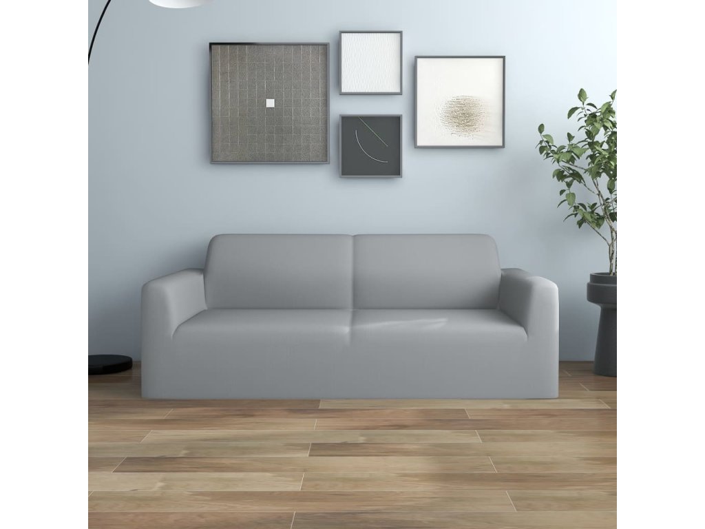 Strečový potah na dvoumístnou pohovku šedý polyesterový žerzej
