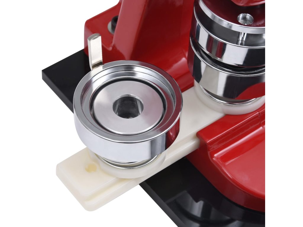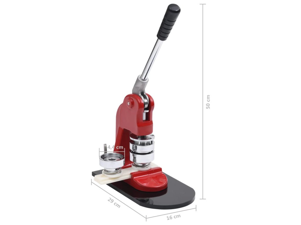 Stroj pro výrobu placek dodáváme se sadou matric vhodných pro výrobu 44mm odznaků. Zásilka obsahuje 500 setů prázdných 44mm kulatých butonů, každý set s kovovým předním dílem, krycí fólií a zadním dílem se špendlíkem. Design zarážky zaručuje dobré zarovnání horní a dolní matrice. Posuvná základna je řešená speciálně pro přesnější a rychlejší práci. Texturovaná rukojeť je uživatelsky příjemná a vyžaduje jen lehkou sílu k vytvoření odznaku, a proto se zařízení velmi snadno ovládá. Balení obsahuje kruhový řezák, takže můžete upravit průměr řezu podle konkrétních potřeb.