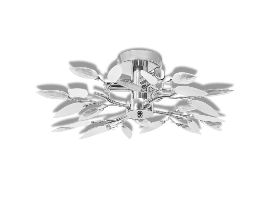 Stropní stínidlo, bílé a čiré křišťálové listy, na 3 žárovky E14