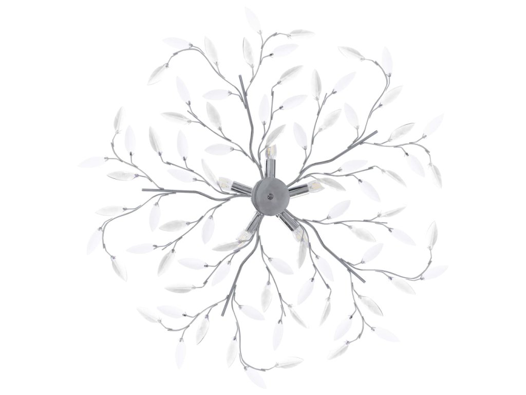 Stropní svítidlo s odolnou kovovou základnou lze snadno namontovat na jakýkoli strop. Saténový chromovaný povrch tohoto lustru je velmi působivý a design ve tvaru větviček s lítsky doplňuje jeho moderní vzhled. Světlo odrážející se na těchto akrylových lístečkách jedinečně osvětlí váš domov. Akrylový materiál se také snadno čistí vlhkým hadříkem.