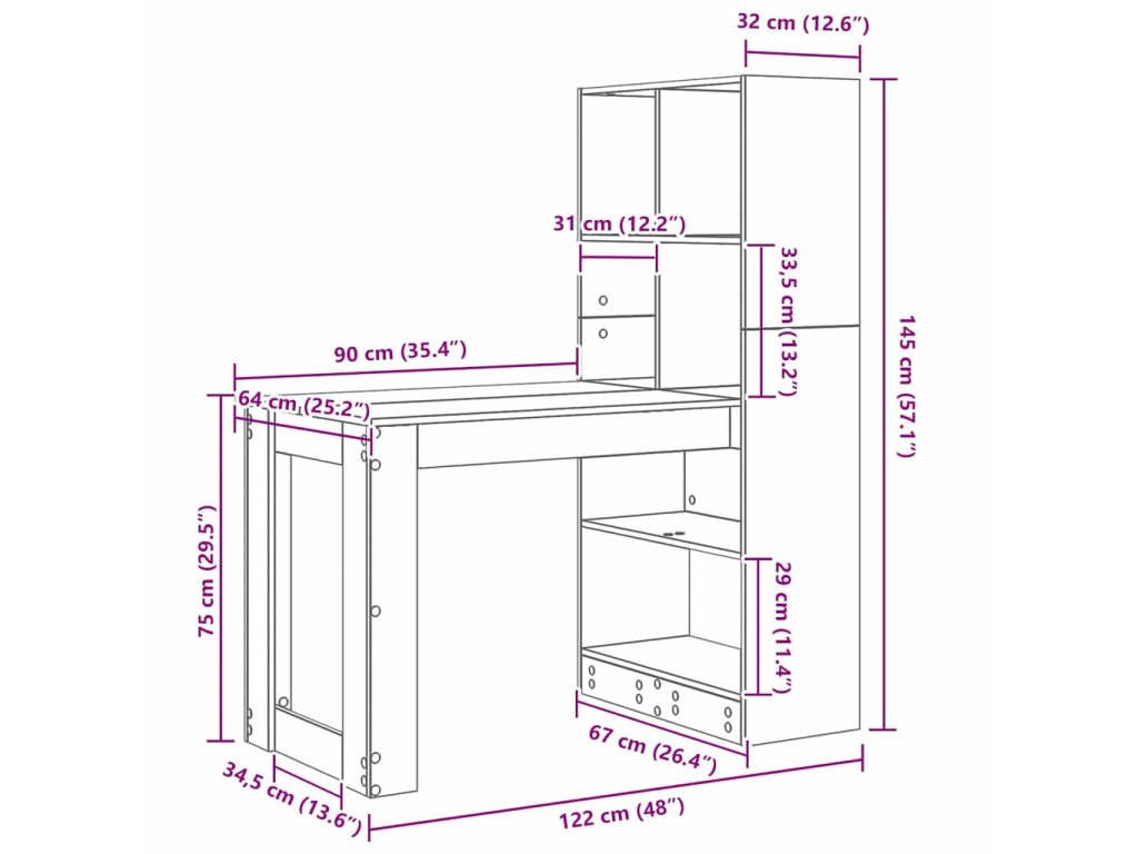 - Praktické poličky: Stůl má poličky, kde pohodlně dosáhneš na knihy a kancelářské potřeby. Jen si to takhle všechno udržuješ organizované a elegantní.