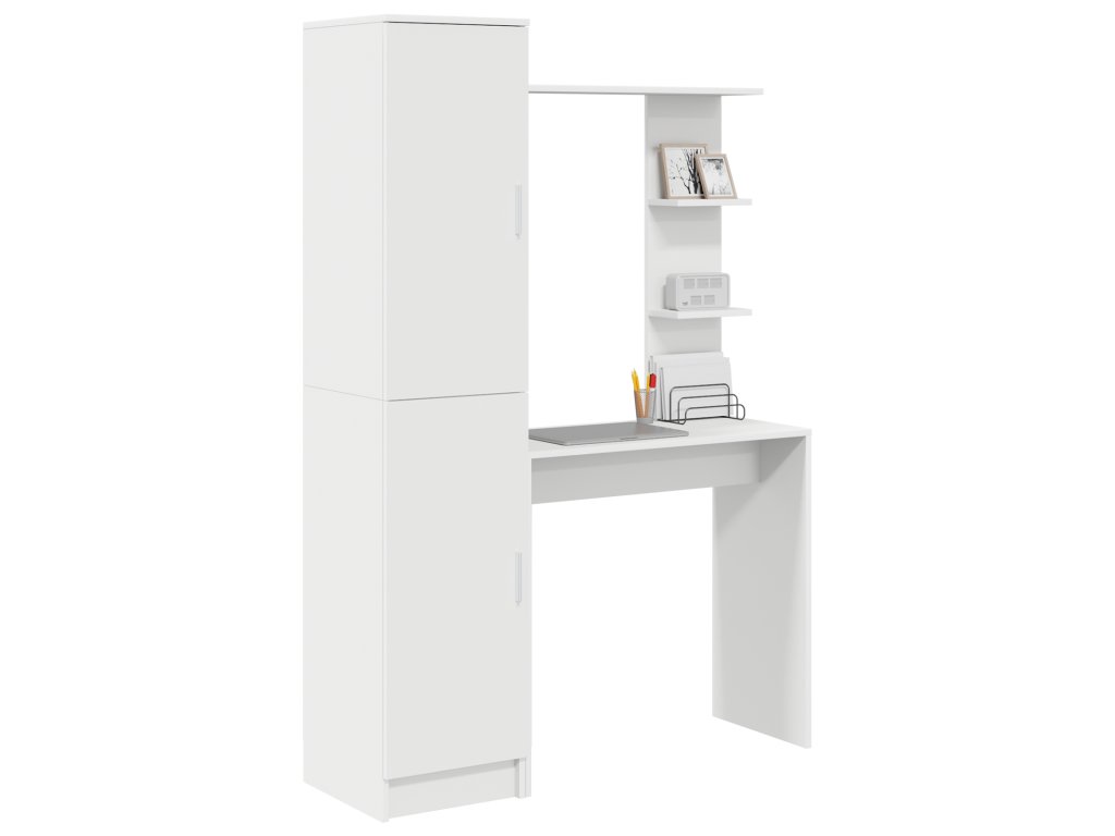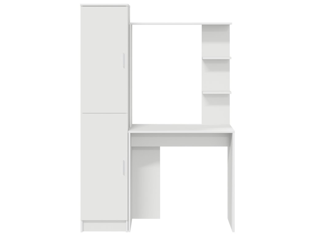 - Praktické úložné možnosti: Díky policím na deskách má stůl spoustu místa na knihy, dokumenty a další kancelářské potřeby, takže plní funkci pracovního prostoru i organizační jednotky. Dveře na pantech chrání předměty před prachem a zabraňují chaosu, když jsou zavřené.