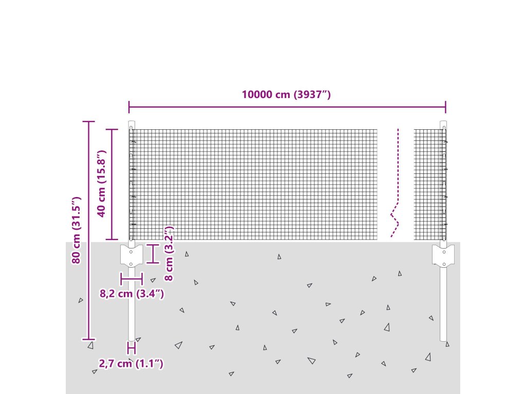 - Celkové rozměry: 10000 x 2,7 x 40 cm (D x Š x V)