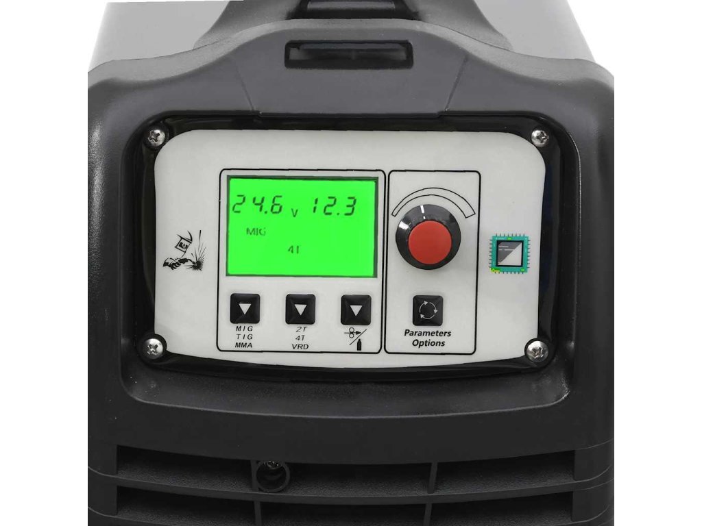 - Snadné použití: Synergická svářečka má digitální panel, který zobrazuje funkční parametry a zajišťuje pohodlné a přehledné ovládání.