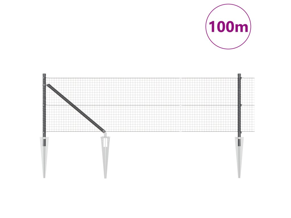 Plotový sloupek. Šedá 100 x 0,5 m (25 x 25 mm síť) Ocel a PVC
