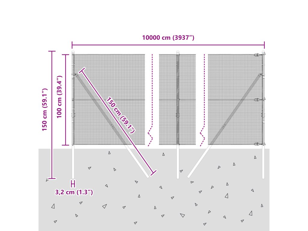 - Celkové rozměry: 10000 x 3,2 x 100 cm (D x Š x V)